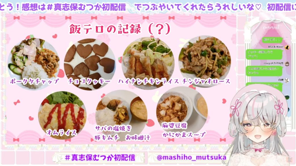 他にもたくさん色々なスクショを撮った方がたくさんいますので、ぜひTwitterで『#真志保むつか初配信』で検索してみてください!