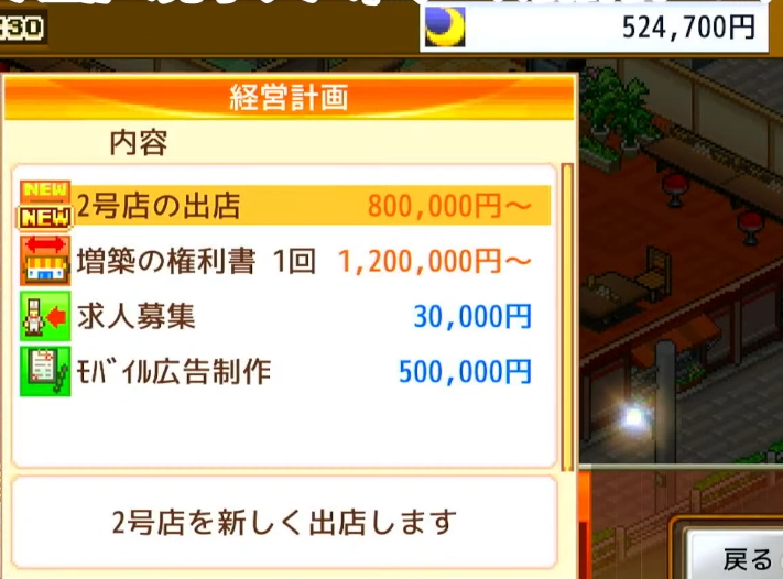 さらにしばらく経営を進めていますと、秘書から『2号店を経営してみませんか?』という打診が。