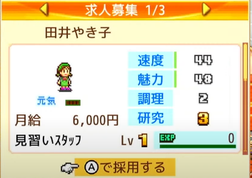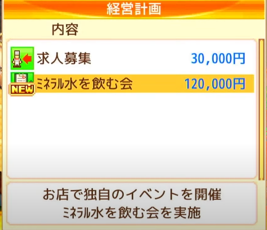 そこから、店の大掃除をしたり清掃活動をしたりしながらお店の人気を上げていき、段々お店が回らなくなってきたので新しい店員を雇ったりなど、順調に続く経営。いいですねぇ。見てるだけで楽しい。