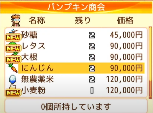 これでついに『食材購入』の機能が解放されまして、とにかく入手率が悪すぎる食材不足の流れをこれで変えられるといいのですが。