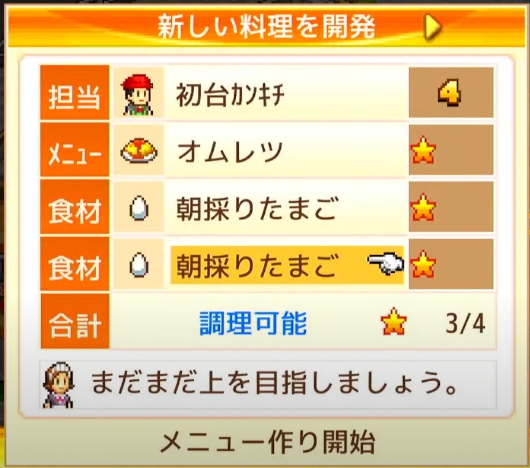 これ序盤の方食材の回転率が悪いのに開発自体は結構短い間隔で回ってくるのなかなかのプレッシャーというか、食材の確保が結構厳しいバランスですね。
