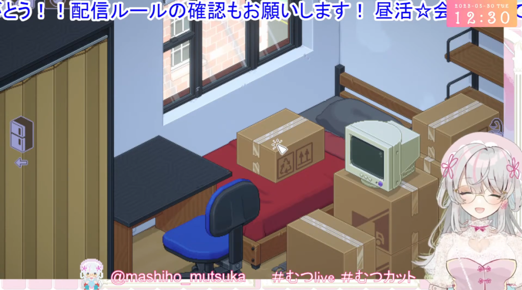 これはリアルタイムの時はお昼の配信なのですが、丁度いいまったり具合ですね。むつかちゃんにはこういうおとなしめのゲームが似合う気がする。でもジャンプキングや壺おじとかでハマりまくるとことかも見てみたい気がする。