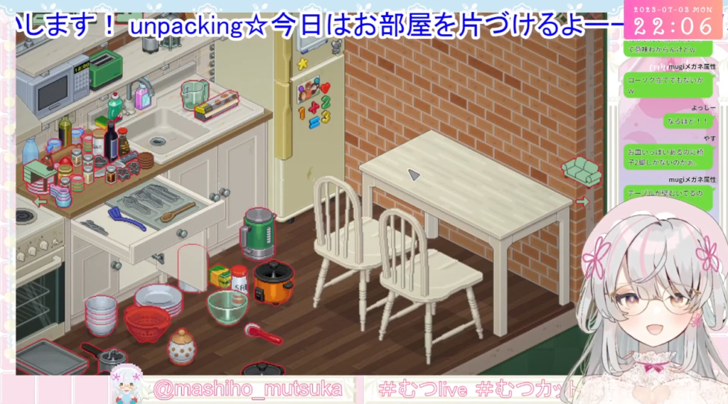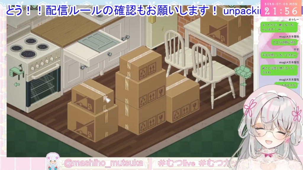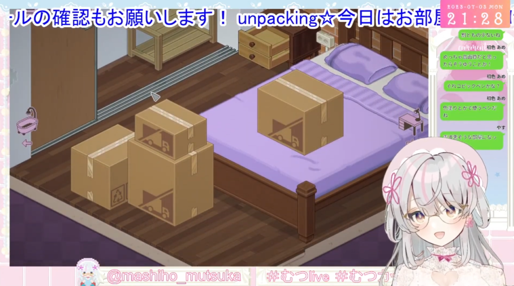 というわけで結構久しぶりでしょうかunpacking。今日はささやき声でのプレイという事で、眠くなる事間違いなしです。タイトルに間違いがあって『#4』とするところをなぜか『#4k』となっておりまして、高画質サギでお送りいたします今回の配信。