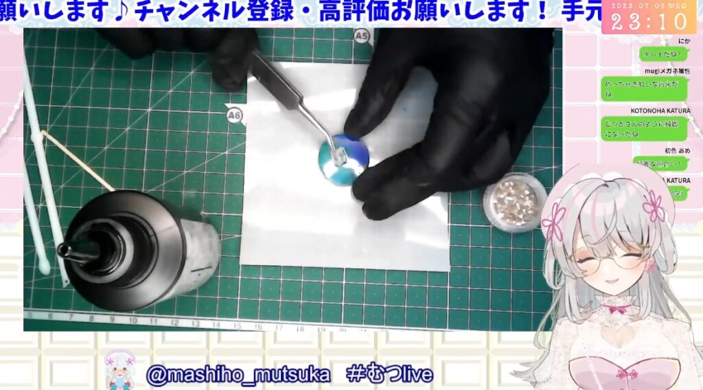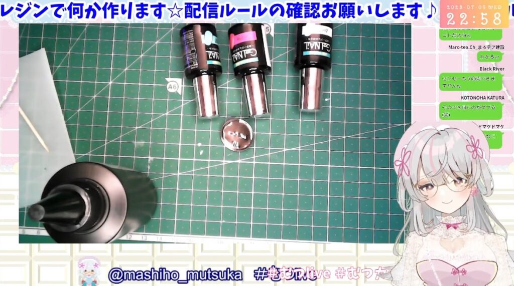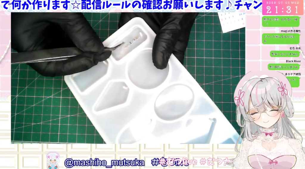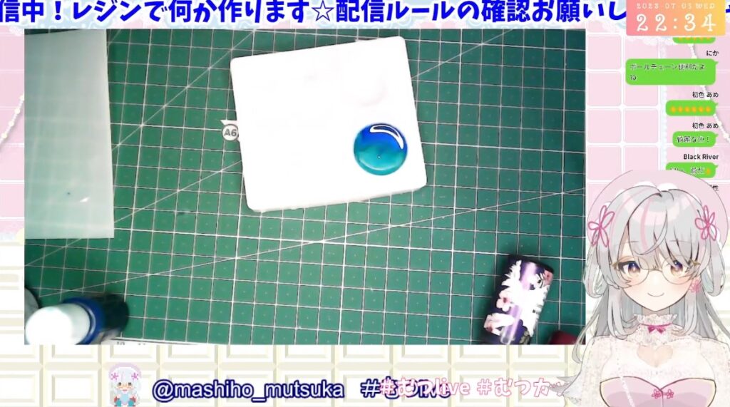 そんなわけで最初にややトラブルがあったものの始まりました今回の配信。今回は実写手元カメラでの作業配信!というわけで、レジンで何かを作っていきます。