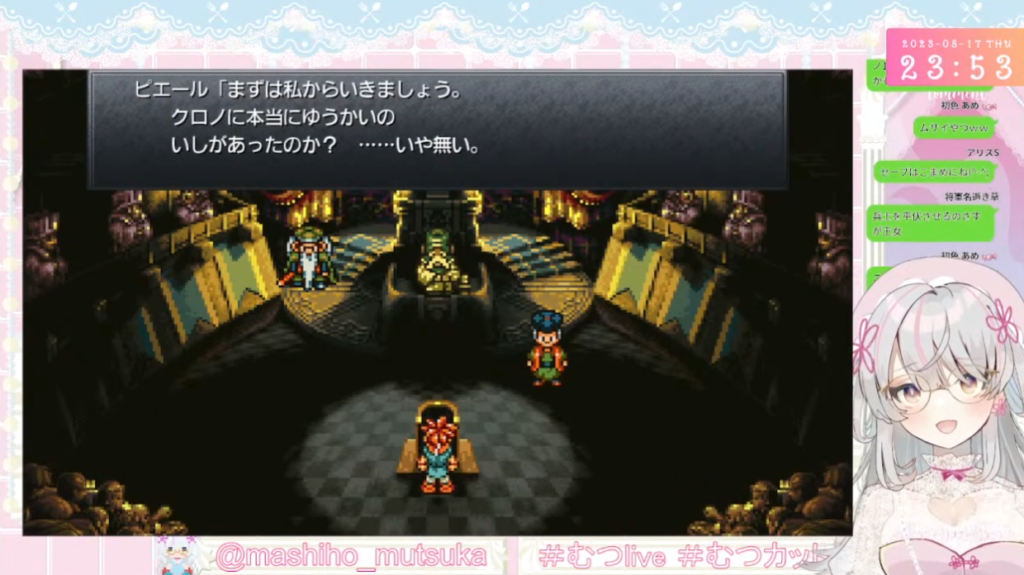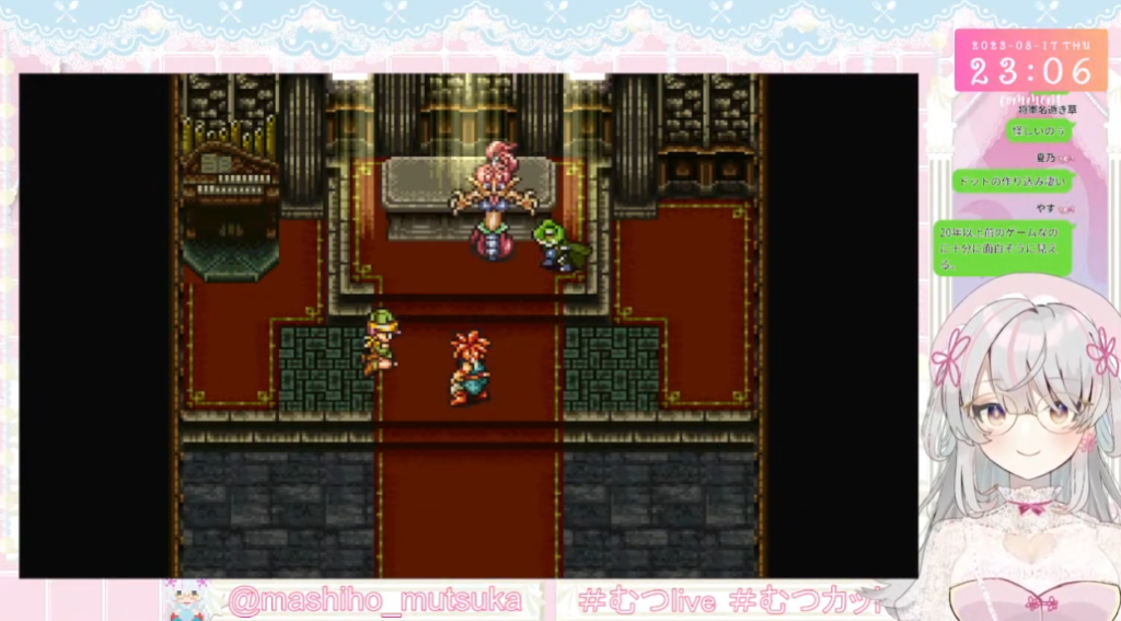 ちなみに、むつかちゃんはクロノトリガーがどうとかではなくそもそもRPGがほぼ初めてなようです。操作説明からじっくり学ぶ流れ。凄いなこれは見ごたえあるわ。